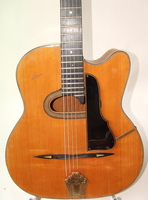 this guitar is quite early..and is a "take" on the Maccaferri Model..it sports the headstock plaque with the earliest address "Rue d'Oregemont"..I have never seen another one since that one.. NHSC SOLD (BEST OF)
