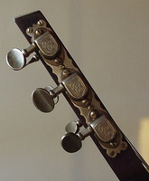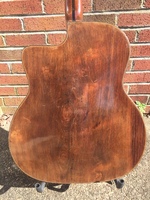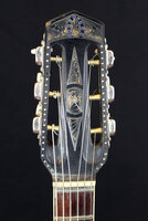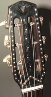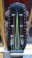 fancy "accordeon" headstock inlays, original BB tailpiece and tuners. grainy laminated Brazilian back and sides. the fingerboard was badly warped and needed to be replaced.. one noteworthy item about the top is that is was originally made of FIVE pieces..!!