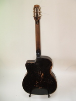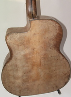 this is an early guitar, with the first address paper label on the neck block. regular 650 mm scale, and a 12fret neck. the "accordeon" decorations on the headstock and pickguard give it a rather festive look. the fingerboard was changed and was refretted. the entire guitar has been gone over..cracks repaired and stable, and now the playability and action are perfect.