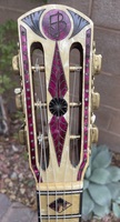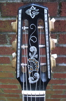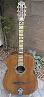 The bigger "sister" to the 12 fret model i have had in the past, this one has a 670mm scale,14 fret to the body, the same "accordeon" decorations with the original fretboard. a beautiful set of replacement BB tuners and tailpiece, give the guitar the final touch.