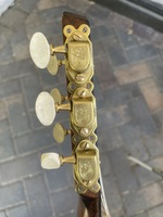 original tailpiece and tuners that turn "backwards with replaced buttons.
