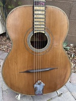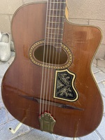 several top cracks professionally repaired, 100% original, tuners tailpiece and finish.. great sounding and playing guitar, to complete a Gypsy Jazz combo..you'll be the proud owner, and for certain, the only one on your block..!!!