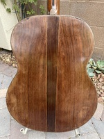 This guitar has a back and sides, that people in France, refer to as "Citronnier" everything to do with Citrus..!!! (thanks Bob) the name in fact is Ceylonese Satinwood...at some point in it's life, somebody "carved" a space near the end of the fingerboard to accomodate a Stimer..the neck angle being too shallow.. the neck is now reset, the top is repaired, the fingerboard and frets are new..the whole guitar has been "French Polished".. it is gorgeous and it is ready to go for decades to come..the action is perfect, the playbility is perfect, and the sound is outstanding. as a bonus it comes with all it's original bits.
