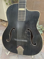 this is an outstanding example of sound and playability. trace of the original paper label is on the neck block..originaly outfitted with cheap tuners and tailpiece (war restrictions) it now sports a set of BB tuners and tailpiece.THIS IS AGREAT GUITAR