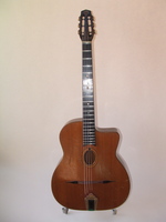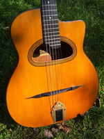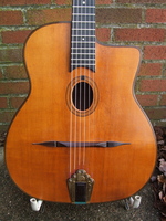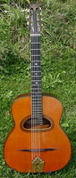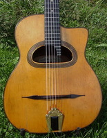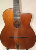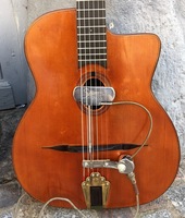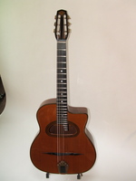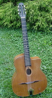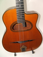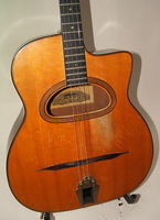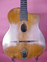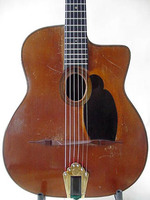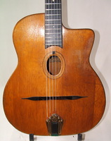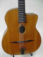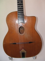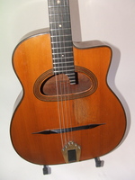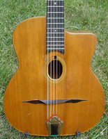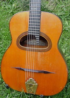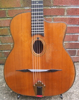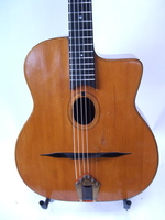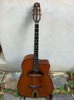 and kept it for over 50 years..!! being unable to play it anymore, he decided it needed a new home, hopefully for the next 50 years..!!! rarely in the gypsy world, does one find an original guitar in the hands of the original owner, this is one such rare case... Bernard played and cared for this guitar... it is almost perfect, save for two small repaired cracks on the top, alongside the fingerboard extension... great playablity.terrific gypsy voice.. NHSC SOLD (BEST OF)