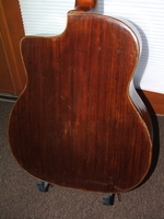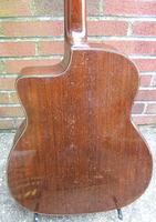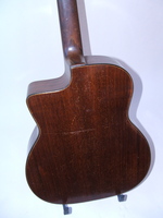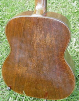 this one is made of beautiful Honduras mahogany, with a solid non grafted headstock Honduras mahogany neck, with an ebony fingerboard. it is in the purest condition.. nothing was changed or done to this guitar.. no cracks anywhere but an obvious sign of serious "pompe"...it even still has the original factory bridge..