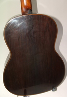 the most noticeable detail being the solid rosewood neck, without the usual "grafted" headstock. showing practically no playing wear, the guitar has nonetheless had the fingerboard replaced and new frets installed..the previous owner applied a light coat of French Polish to "clean it up"..the top, or body, or back, have no cracks, and the geometry is a perfect as the day it was built..most excellent playability and sound.. NHSC SOLD (BEST OF)