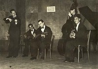 and band leader.. he certainly was quite a presence.. his photo appears in Francois' book on page 13 in the Ray Ventura band with an oval hole, then with a round hole non cut on page 84, and again with a round hole cutaway on page115..