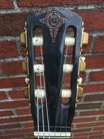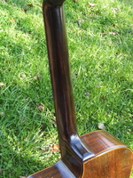 it has a solid rosewood neck. no "grafted' headstock as many of the last ones..it is in excellent condition, with 4 cracks that have been splinted and touched up so as to be virtually invisible.. the top retains it's original "bombé"..the action is spot on, and the sound is most excellent with greater volume than some..
