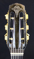 "Espagnole".. a trace of the possible inprint of a "reflector" belonging to the internal resonator.. but no sign of ever having one installed.. it has a rounded headstock, where