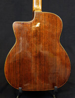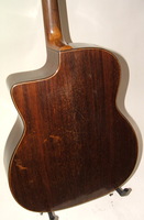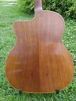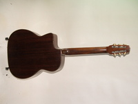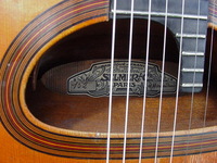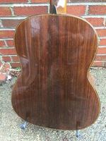 just a dozen numbers away from the last one, it comes with a solid rosewood neck, ebony fingerboard, laminated rosewood back and sides. the top had a three little holes to fasten the Stimer..as well as a couple of "wear spots" which were addressed with little spruce inlays. remarkably, the top has no cracks and the geometry is perfect..the whole guitar has been French polished and apart from the cosmetic work, the guitar is in outstanding structural condition. the playability is perfect, and the sound is superb.