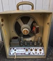 Very rarely, do opportunities like this one ever occur.. the rig was found in central France, purchased from the son of the original owner, who bought it directly from Selmer in 1948, and recently given to Jerome Casanova, who for years has been the preeminent restorer of these guitars.. in the Selmer log book, # 703 is entered as having been finished on 16 January 1948, and sold on 21 January 1948. it is now in perfect playing condition.. several top cracks were repaired and cleated, the fingerboard replaced, and refretted. the finish is original on the guitar, apart some touch up where the cracks were.. it is accompanied by an outstanding period rig.. a ST51 Stimer and a a period M 10 Stimer amplifier.. the type of set up that evolved from Django's ST 48 set up.. I guess players balked at the idea of screwing a pick up directly on the top of the guitar..