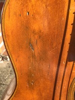 just some playing scratches..at some point, the neck was reset, and the guitar refretted, following Selmer's method of rounding off the edges of each fret, and I just replaced the bridge, which will be darkened to match the moustaches..the playability is perfect, and the sound is tremendous.. NHSC SOLD (BEST OF)