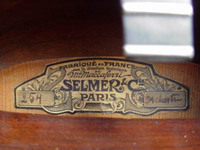 without the internal resonator..this guitar is indeed from the earliest production..having the Selmer logo set low on the headstock.one can faintly see where the Maccaferri patent would have been set.. this guitar is in outstanding condition, excellent playability..no big cracks anywhere.. traces of the resonator presence still to be seen.. unfortunately, removing the resonators, was very much in fashion in the past, and thus losing the serial number.. it has been refretted on the original fingerboard, and the original tuners (replaced buttons) are on, as well as the tailpiece. the sound is outstanding NHSC SOLD (BEST OF)