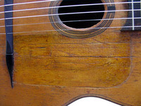 that's it for the negative.. for the positive, it remains an extremely rare and highly collectible early Maccaferri, retaining the resonator inside, as well as excellent sound and playability.. as of 2005, only half a dozen of these guitars