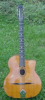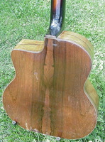 beautiful laminated brazilian back and sides, three piece maple neck with ebony board.. the top shows a trace of a small clear pickguard having been there.. it's gone now... the sound and playability are excellent as usual for