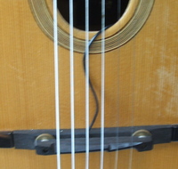 The guitar has had 2 top cracks repaired and cleated and are perfectly stable.. the overall condition is superb and the playabilty and sound outstanding. It is equipped with a "Fishman" adjustable bridge and the sound amplified is excellent. however if somebody insisted, the whole rig could be taken off without a problem, and the original bridge put back for a total acoustic experience..!!