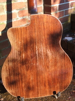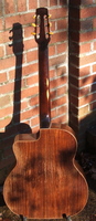 with a cedar top which seems to have been a "classic" option during the 1970's..laminated rosewood back and sides, three piece maple neck, ebony fingerboard, and sporting the original tailpiece and SB tuners. it is the quintessential Favino..