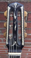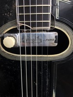This is truly an exceptional guitar.. by it's rarity, it's condition, and it's extraordinary tone.. Busato Grand Luxe do not appear very often.. this one is even rarer as it is a 14 fret large soundhole..it is also outfitted with a detachable PU, the likes of which I have never seen before.. it is called the "L'Amplific" made in Paris..!!! most probably contemporary to Stimer.. the bracket affixed at the end of the fingerboard, allows for a quick installation and removal. the guitar was refretted while preserving the original inlays, and now the playability is spot on.. the fingerboard is radiused, which is another noteworthy aspect of this guitar.. also sporting a snazzy original pickguard..