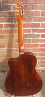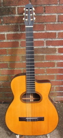 this is the first guitar I have the pleasure to find made by Mr Roccia. who for years worked at Clifford Essex's shop in London. He was the "specialist" of gypsy guitars, and is behind a lot of the conversions and repairs which took place at the shop. this is his version of the Maccaferri Concert classical. made of absolutely exquisite materials. solid rosewood back and sides, solid european spruce to, mahogany neck with a nebony fingerboard. the top has one ancient crack repaired and very solid. fitted with a beautiful set of original classical SB tuners.